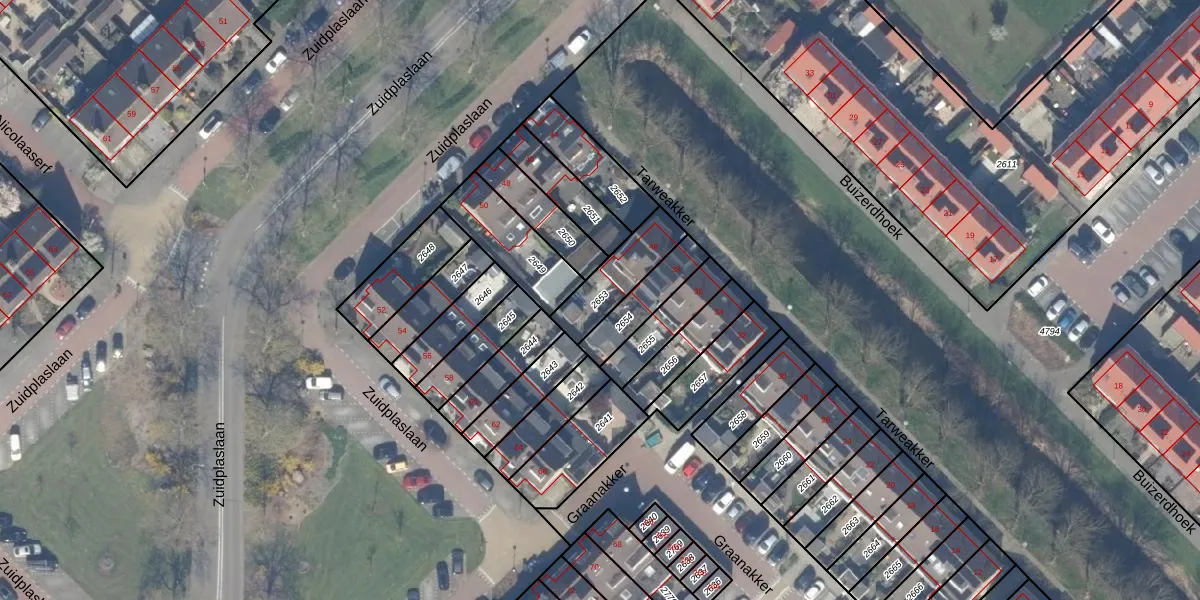 Gebruik de zoekbalk of klik op een perceel om informatie over het perceel te bekijken.