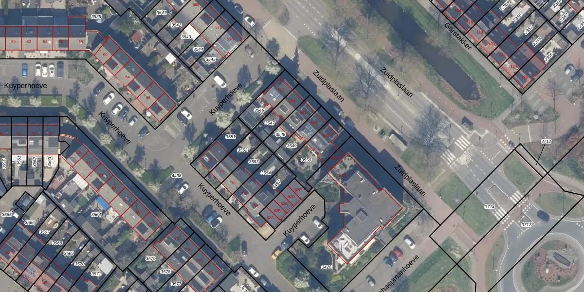 Gebruik de zoekbalk of klik op een perceel om informatie over het perceel te bekijken.