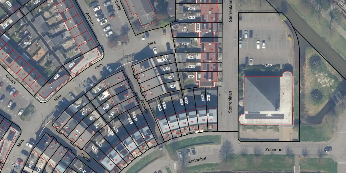 Gebruik de zoekbalk of klik op een perceel om informatie over het perceel te bekijken.