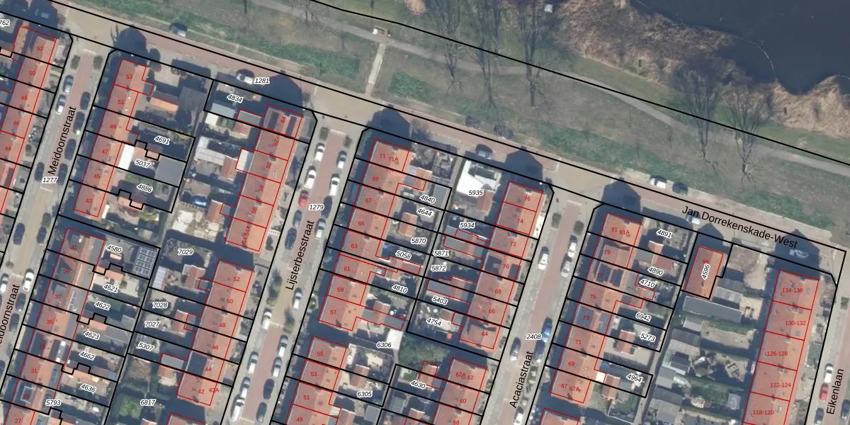 Gebruik de zoekbalk of klik op een perceel om informatie over het perceel te bekijken.