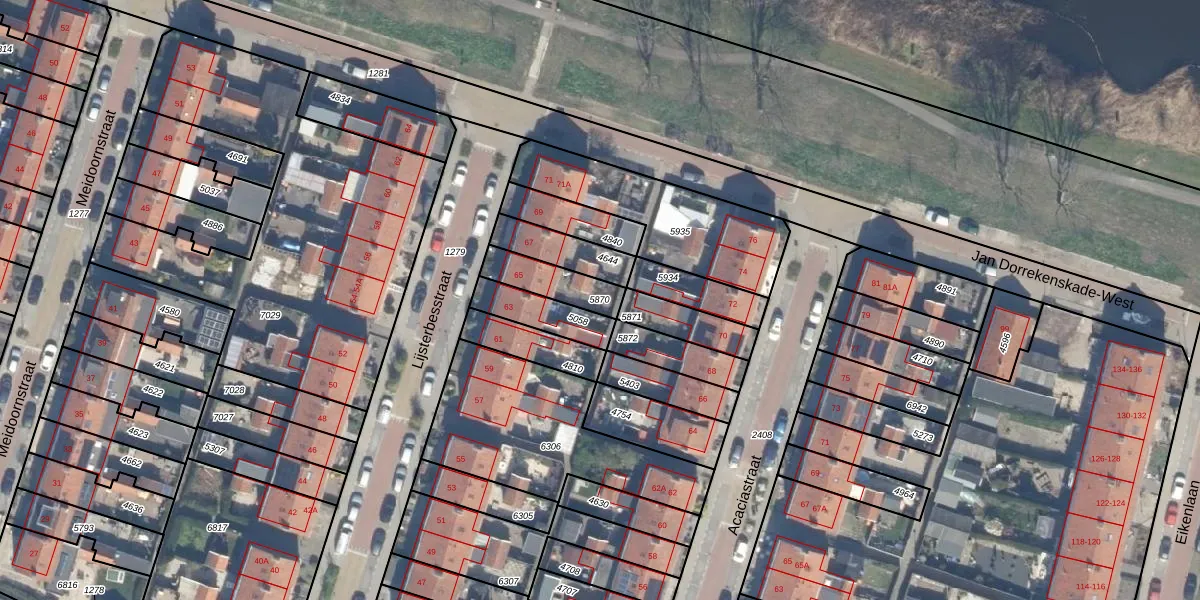 Gebruik de zoekbalk of klik op een perceel om informatie over het perceel te bekijken.