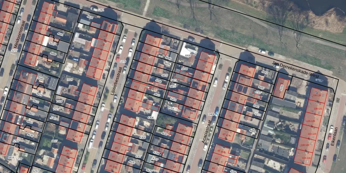 Gebruik de zoekbalk of klik op een perceel om informatie over het perceel te bekijken.