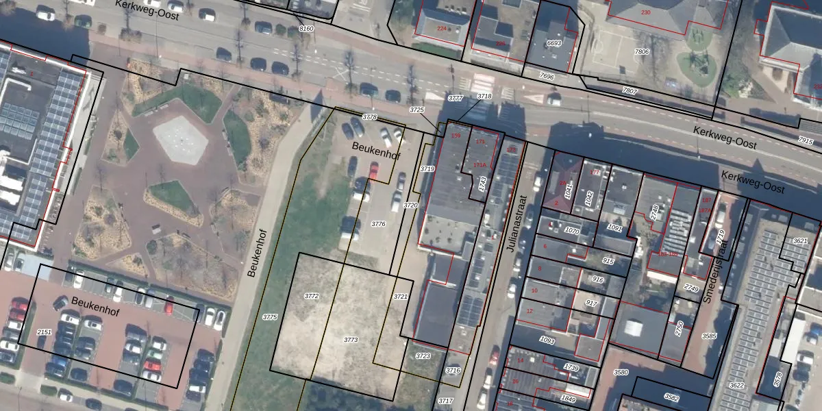 Gebruik de zoekbalk of klik op een perceel om informatie over het perceel te bekijken.