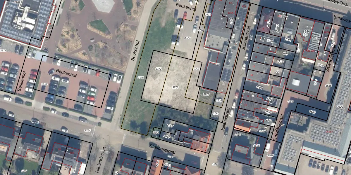 Gebruik de zoekbalk of klik op een perceel om informatie over het perceel te bekijken.