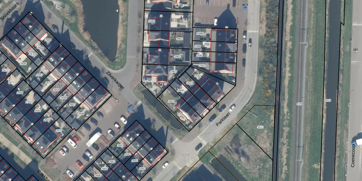 Gebruik de zoekbalk of klik op een perceel om informatie over het perceel te bekijken.