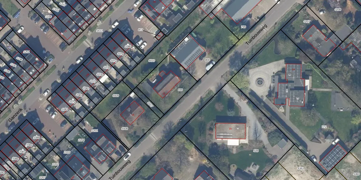 Gebruik de zoekbalk of klik op een perceel om informatie over het perceel te bekijken.