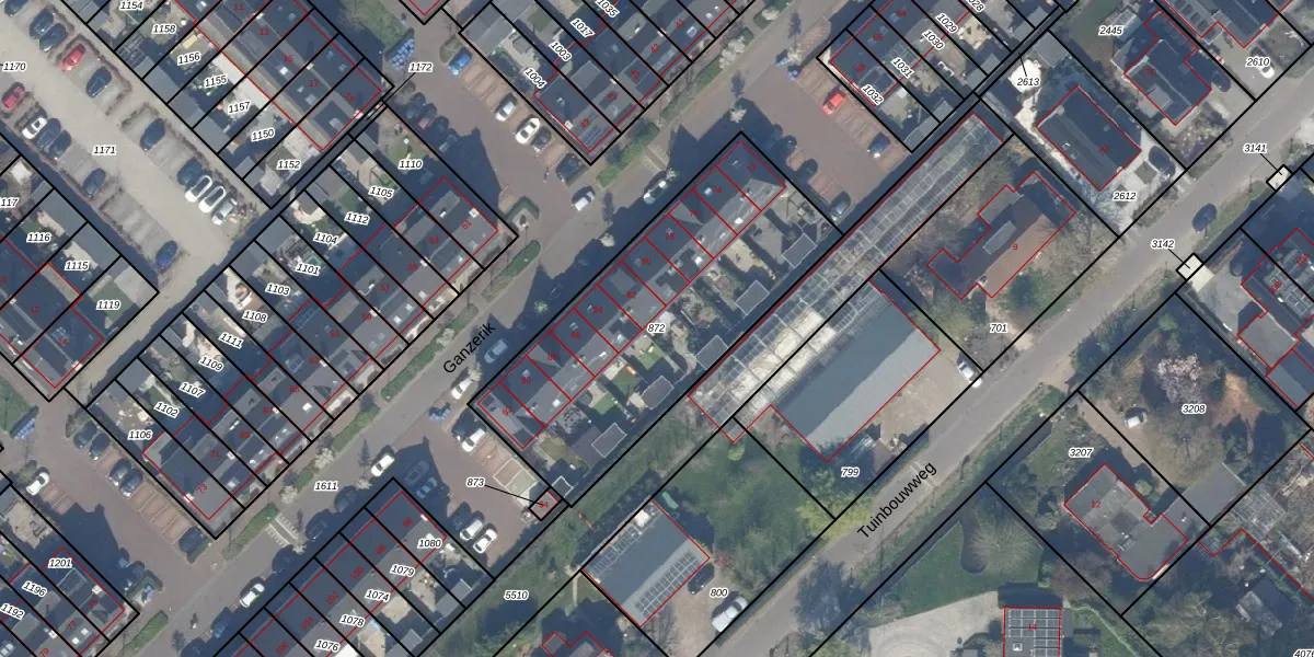 Gebruik de zoekbalk of klik op een perceel om informatie over het perceel te bekijken.