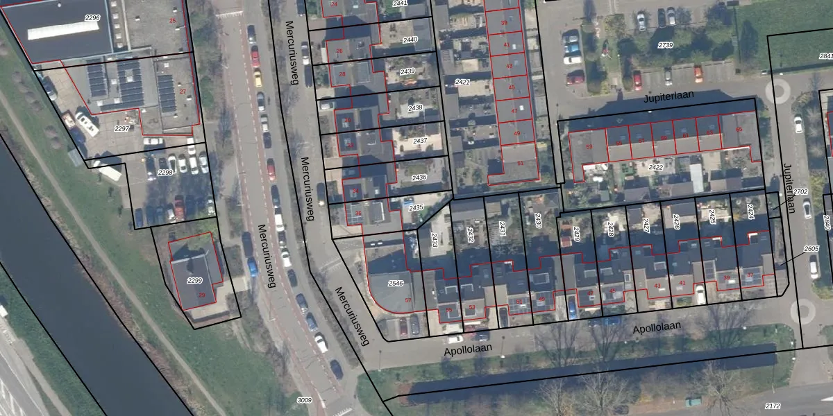 Gebruik de zoekbalk of klik op een perceel om informatie over het perceel te bekijken.