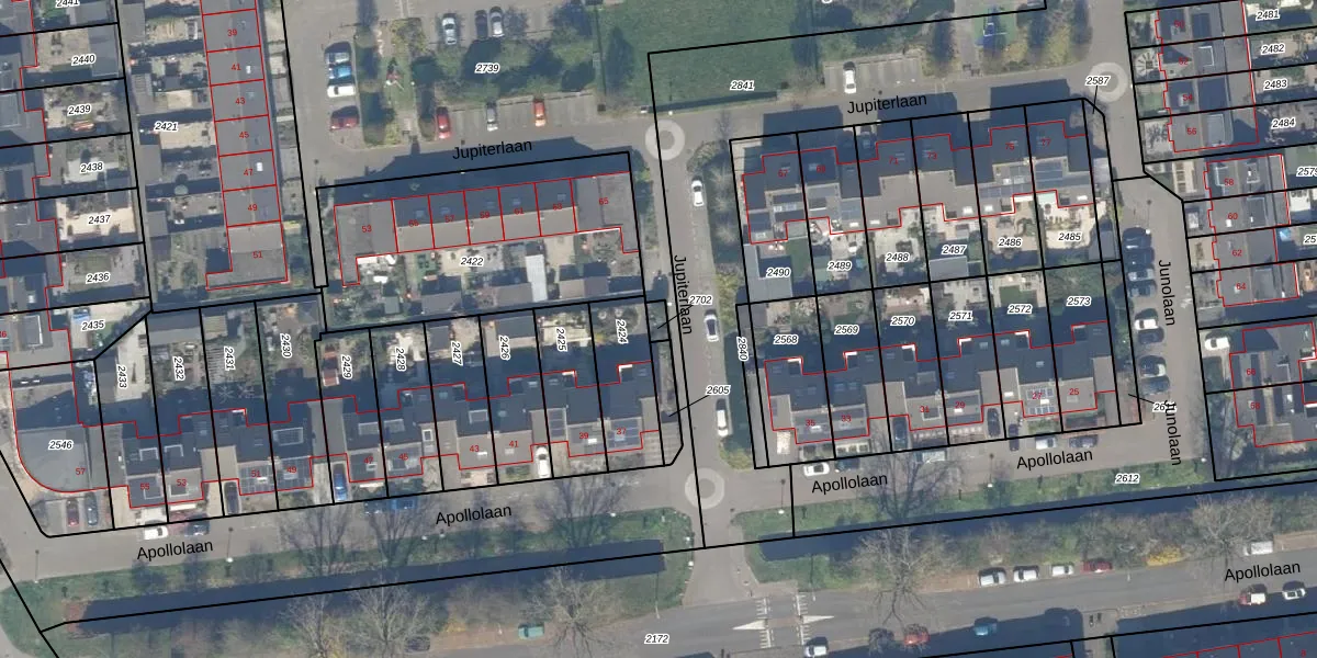 Gebruik de zoekbalk of klik op een perceel om informatie over het perceel te bekijken.