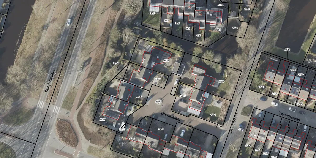 Gebruik de zoekbalk of klik op een perceel om informatie over het perceel te bekijken.
