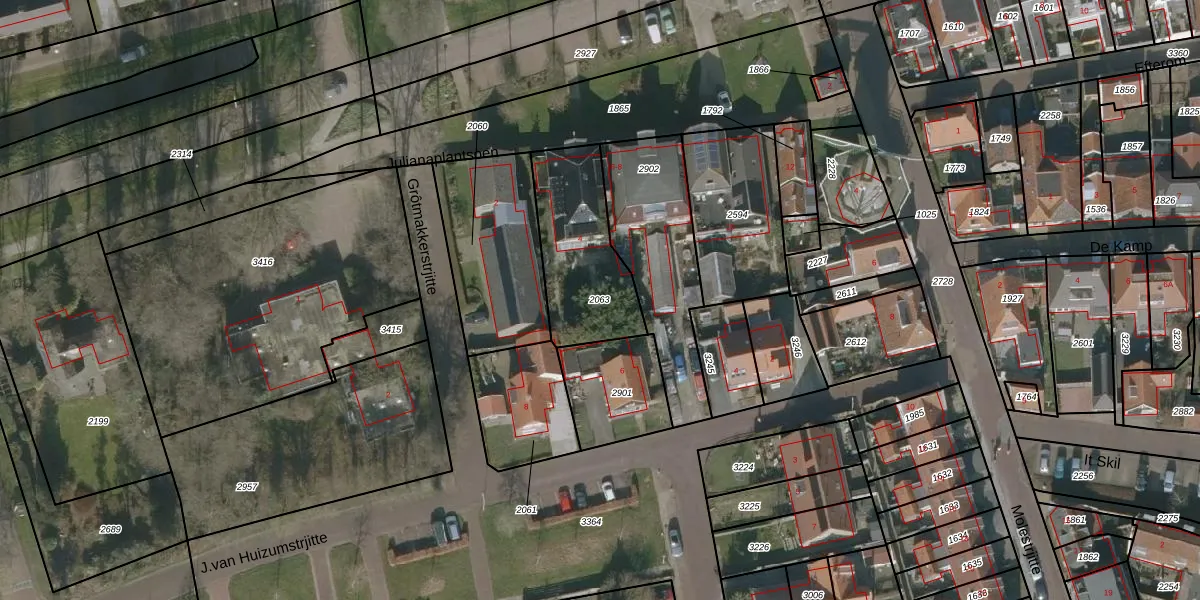 Gebruik de zoekbalk of klik op een perceel om informatie over het perceel te bekijken.
