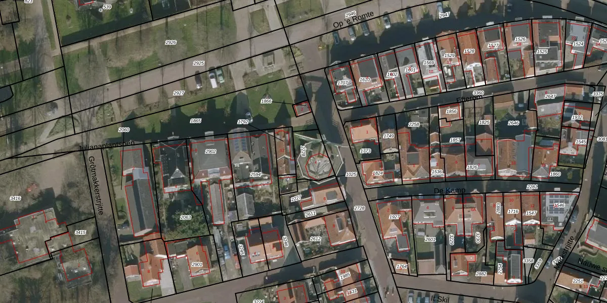 Gebruik de zoekbalk of klik op een perceel om informatie over het perceel te bekijken.