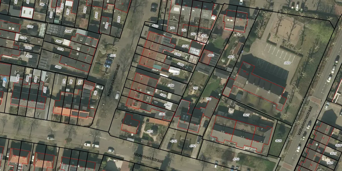 Gebruik de zoekbalk of klik op een perceel om informatie over het perceel te bekijken.