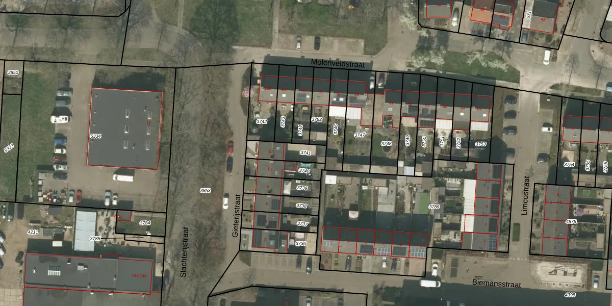 Gebruik de zoekbalk of klik op een perceel om informatie over het perceel te bekijken.