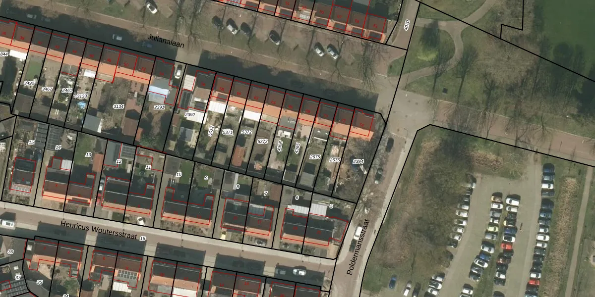 Gebruik de zoekbalk of klik op een perceel om informatie over het perceel te bekijken.