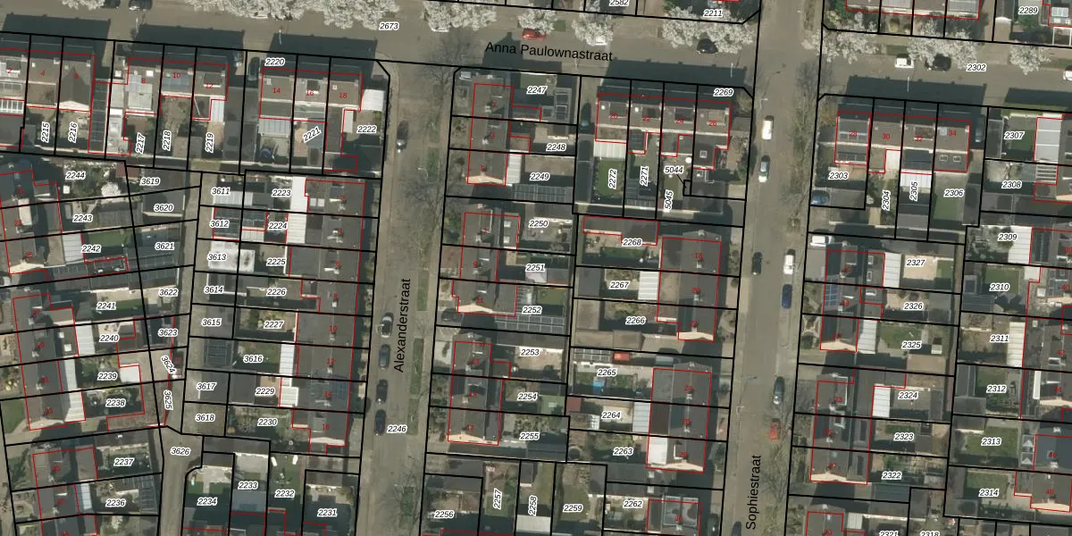 Gebruik de zoekbalk of klik op een perceel om informatie over het perceel te bekijken.