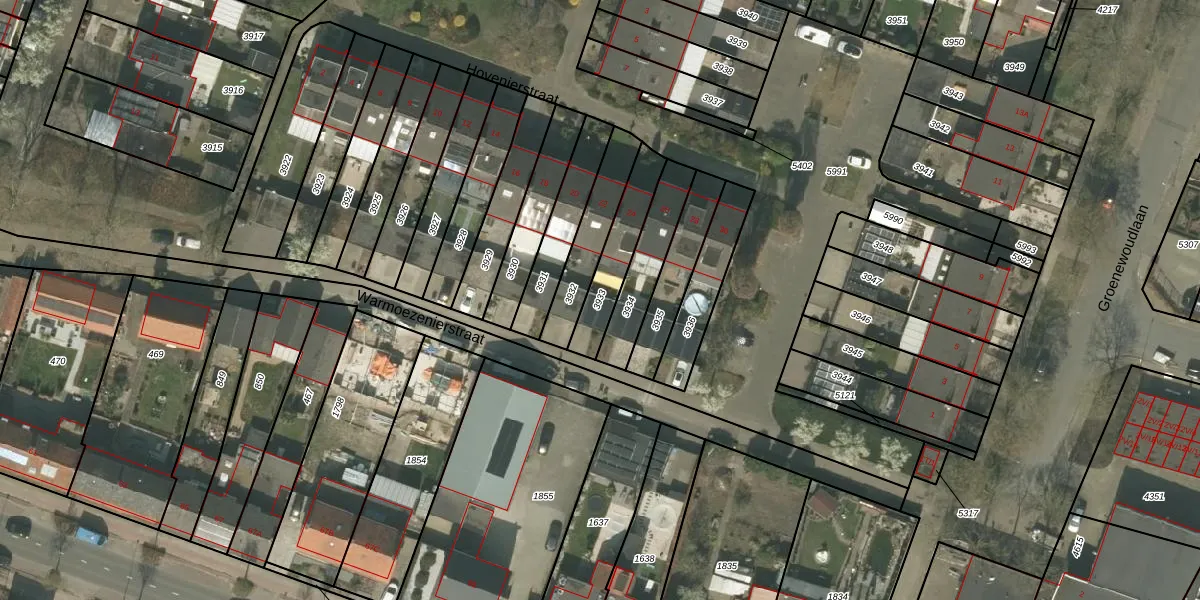 Gebruik de zoekbalk of klik op een perceel om informatie over het perceel te bekijken.