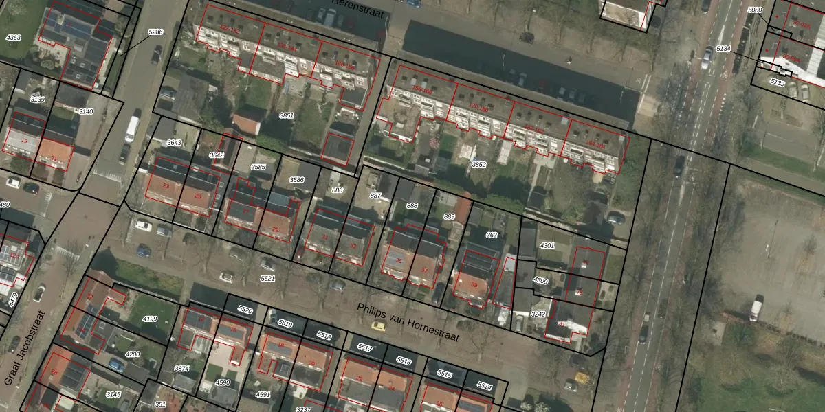 Gebruik de zoekbalk of klik op een perceel om informatie over het perceel te bekijken.