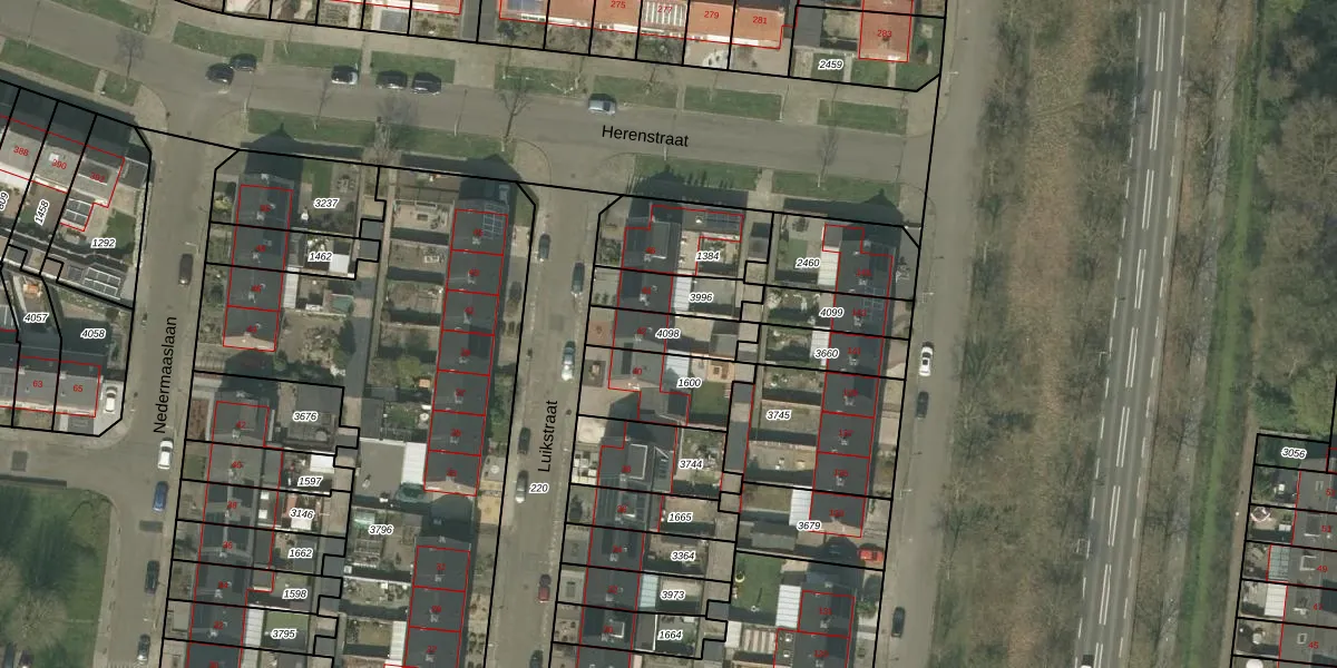 Gebruik de zoekbalk of klik op een perceel om informatie over het perceel te bekijken.