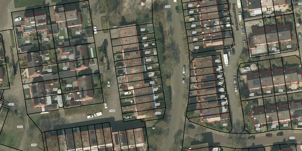 Gebruik de zoekbalk of klik op een perceel om informatie over het perceel te bekijken.