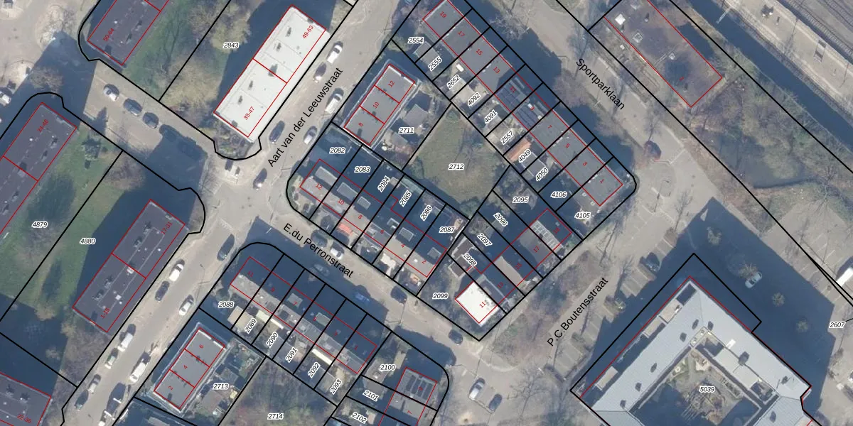 Gebruik de zoekbalk of klik op een perceel om informatie over het perceel te bekijken.