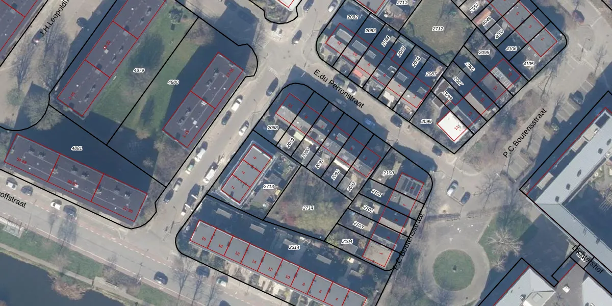 Gebruik de zoekbalk of klik op een perceel om informatie over het perceel te bekijken.