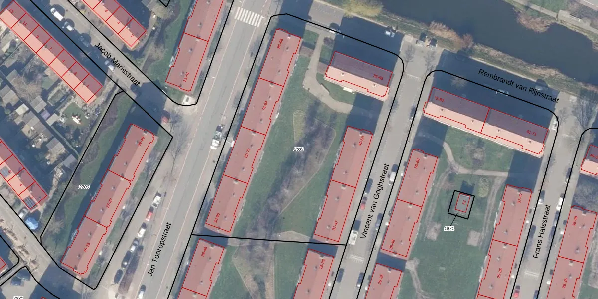 Gebruik de zoekbalk of klik op een perceel om informatie over het perceel te bekijken.