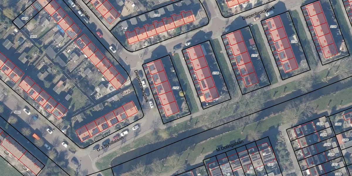 Gebruik de zoekbalk of klik op een perceel om informatie over het perceel te bekijken.