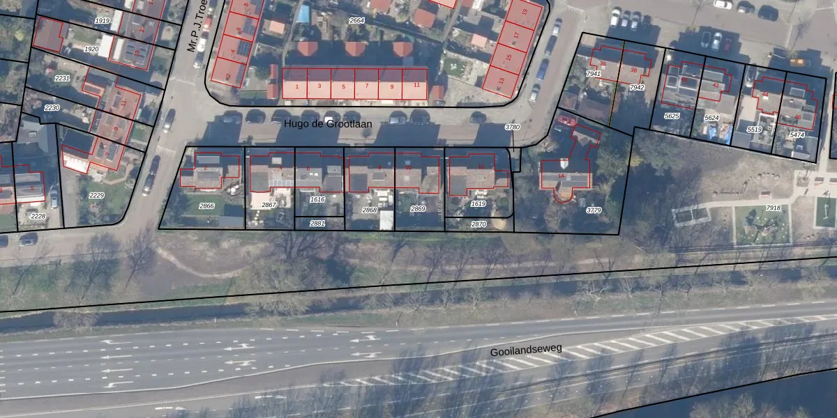 Gebruik de zoekbalk of klik op een perceel om informatie over het perceel te bekijken.