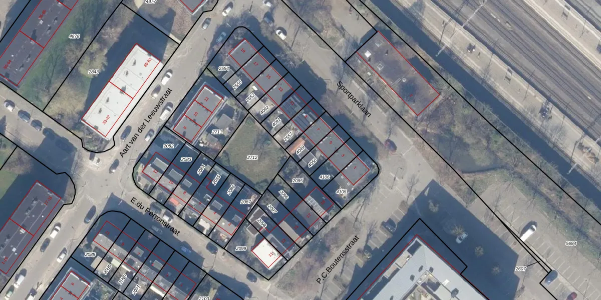 Gebruik de zoekbalk of klik op een perceel om informatie over het perceel te bekijken.