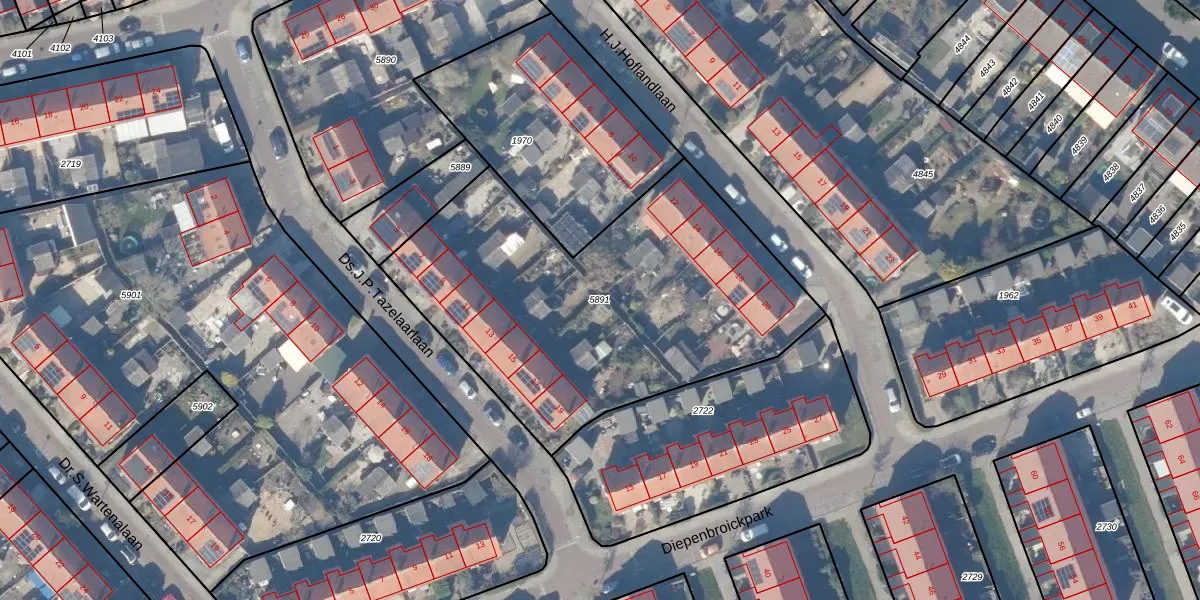 Gebruik de zoekbalk of klik op een perceel om informatie over het perceel te bekijken.