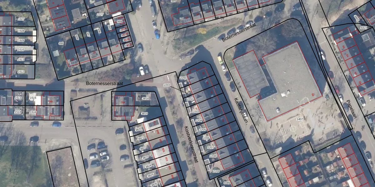 Gebruik de zoekbalk of klik op een perceel om informatie over het perceel te bekijken.