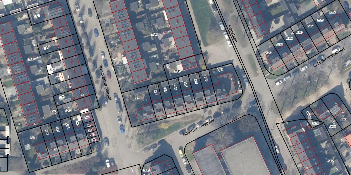 Gebruik de zoekbalk of klik op een perceel om informatie over het perceel te bekijken.