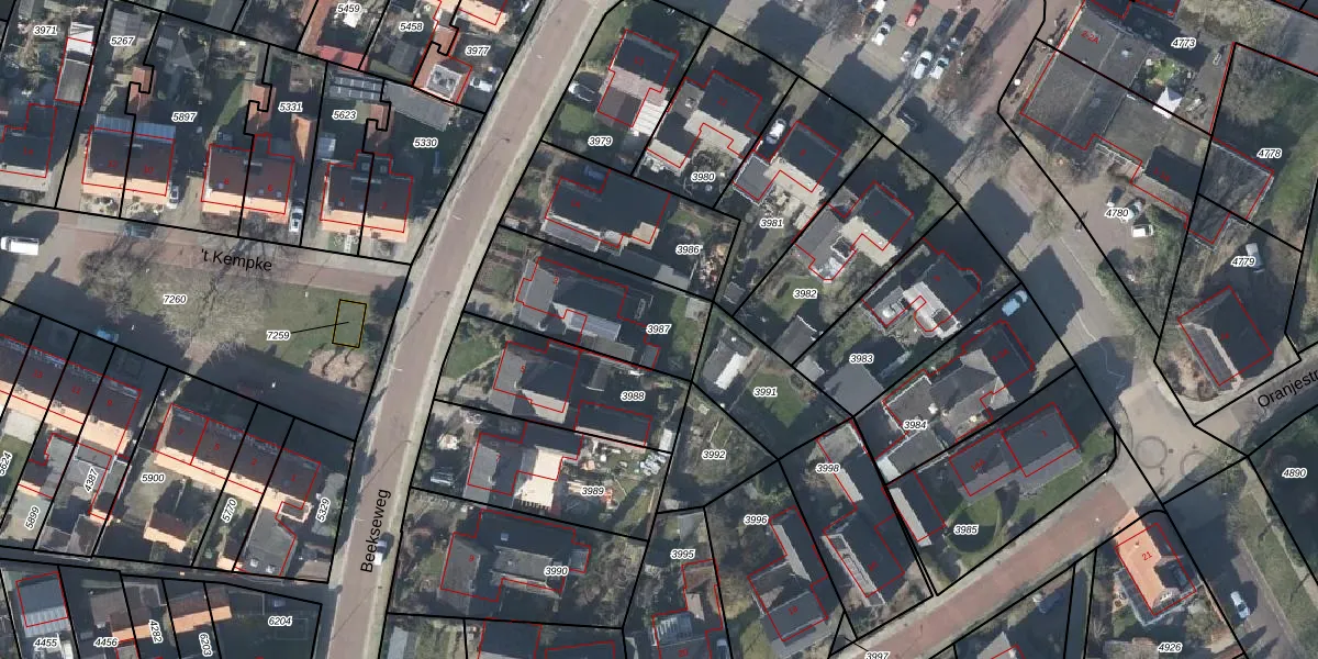 Gebruik de zoekbalk of klik op een perceel om informatie over het perceel te bekijken.