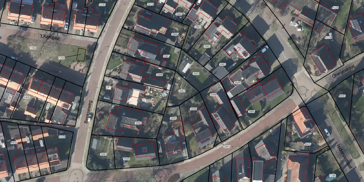 Gebruik de zoekbalk of klik op een perceel om informatie over het perceel te bekijken.