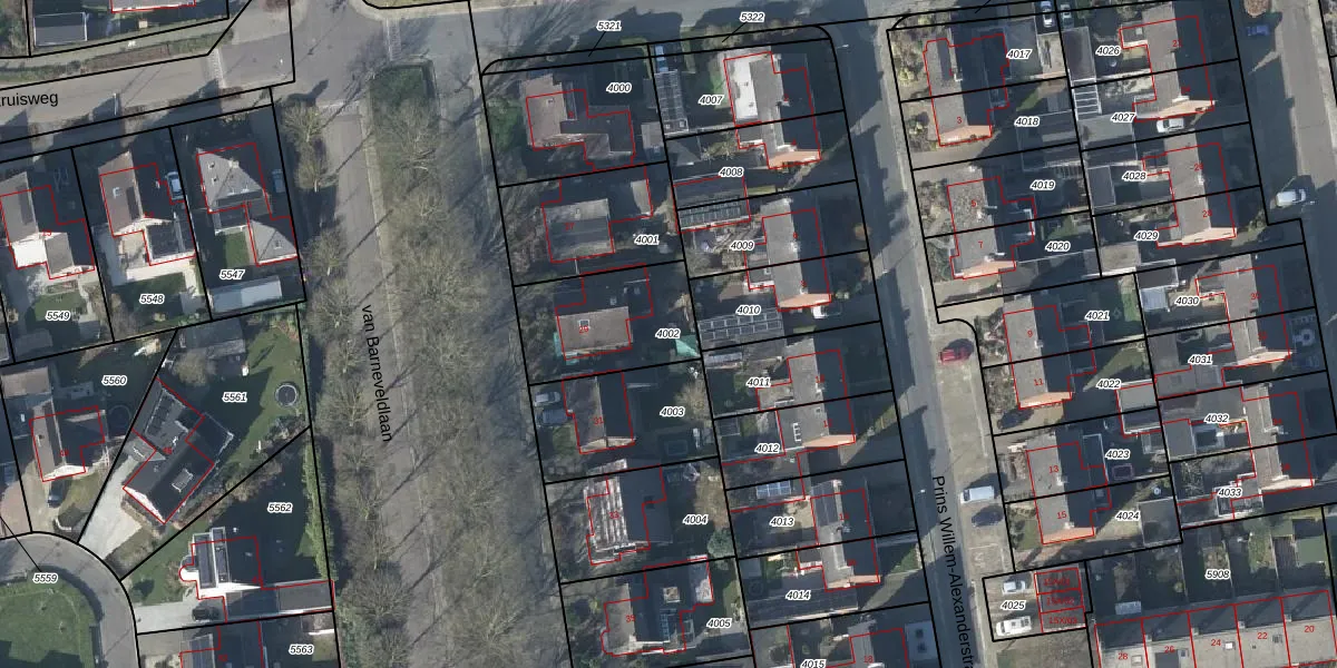 Gebruik de zoekbalk of klik op een perceel om informatie over het perceel te bekijken.