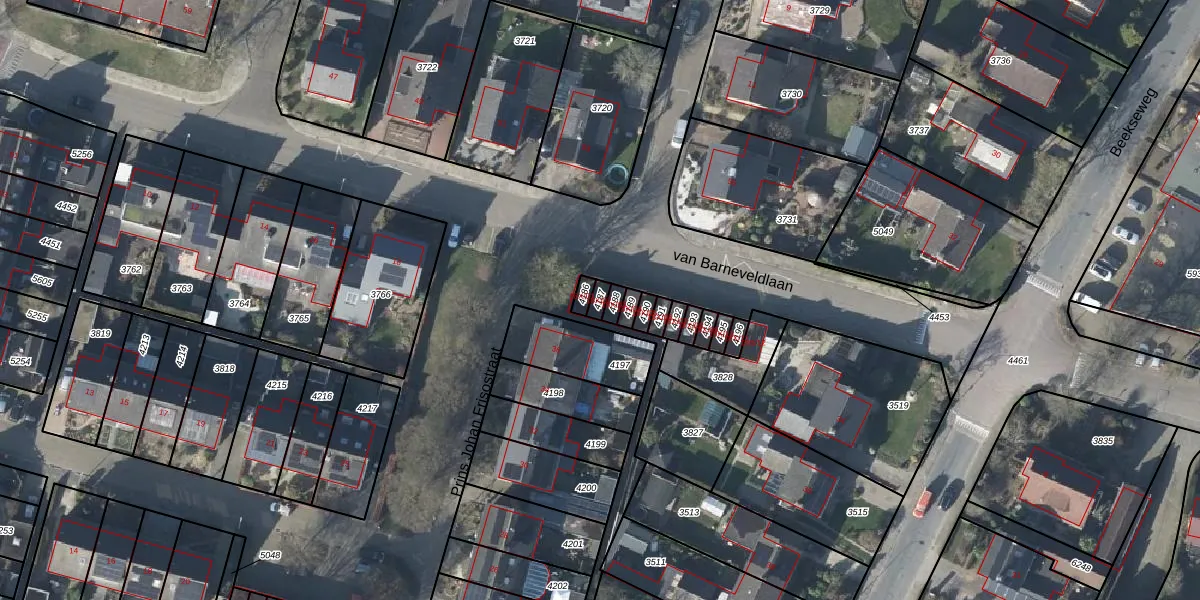 Gebruik de zoekbalk of klik op een perceel om informatie over het perceel te bekijken.