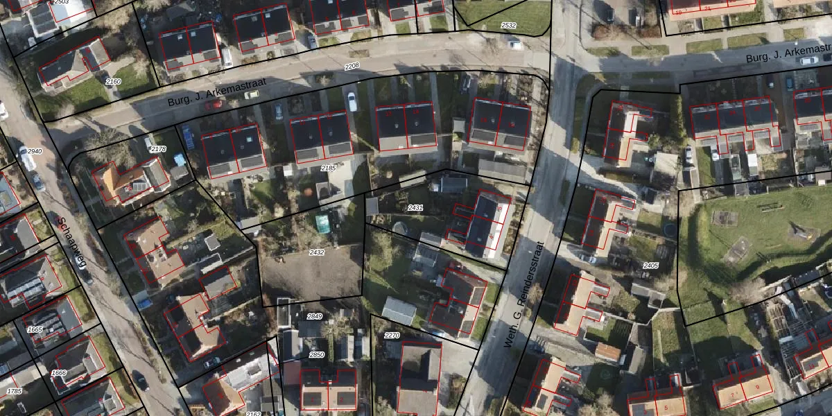 Gebruik de zoekbalk of klik op een perceel om informatie over het perceel te bekijken.