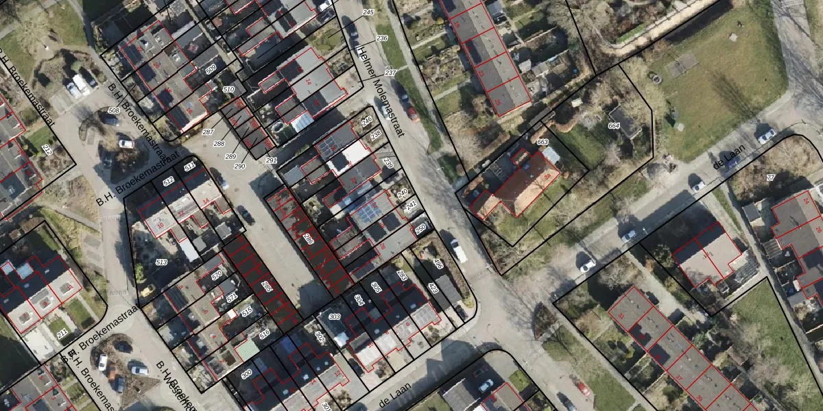 Gebruik de zoekbalk of klik op een perceel om informatie over het perceel te bekijken.