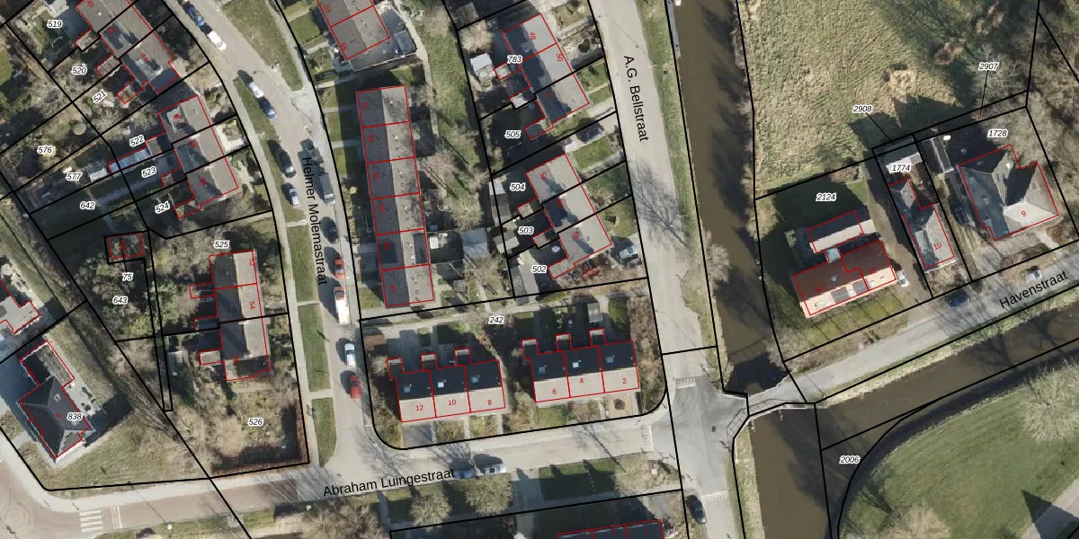 Gebruik de zoekbalk of klik op een perceel om informatie over het perceel te bekijken.