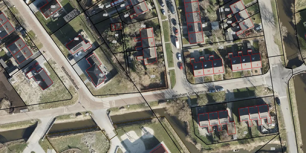 Gebruik de zoekbalk of klik op een perceel om informatie over het perceel te bekijken.