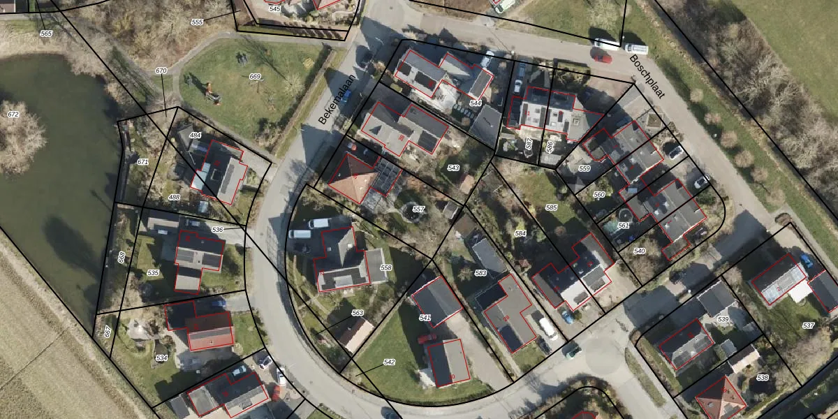 Gebruik de zoekbalk of klik op een perceel om informatie over het perceel te bekijken.