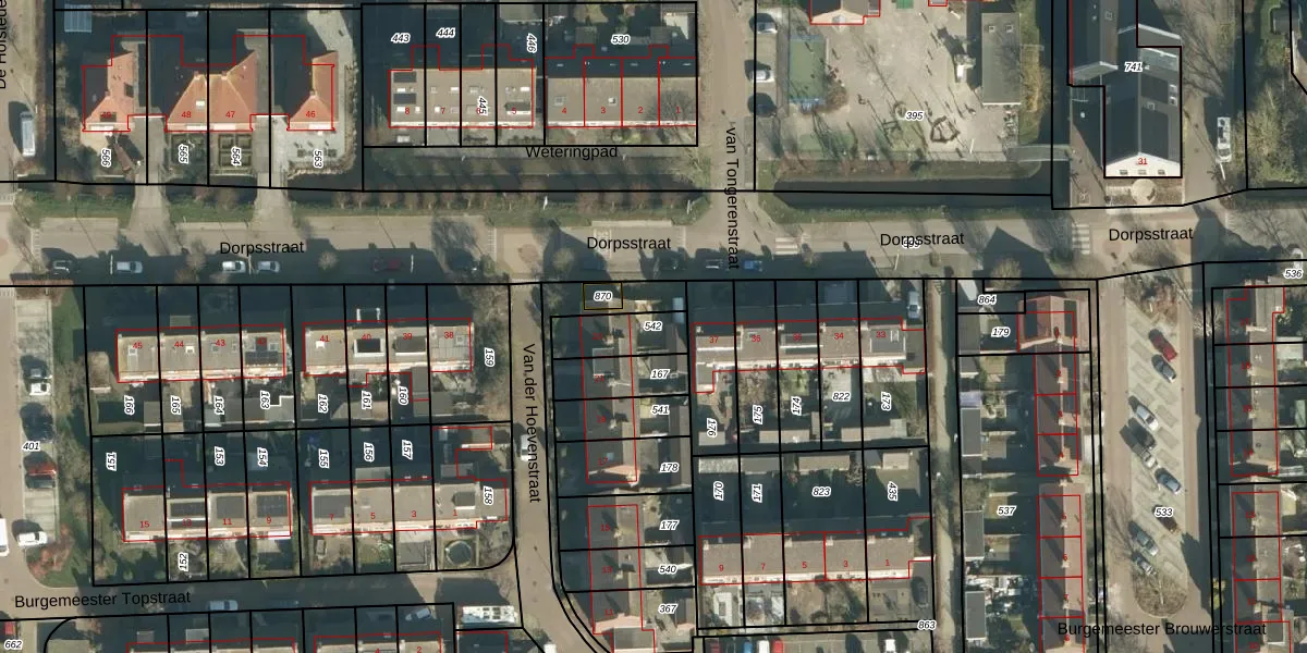 Gebruik de zoekbalk of klik op een perceel om informatie over het perceel te bekijken.