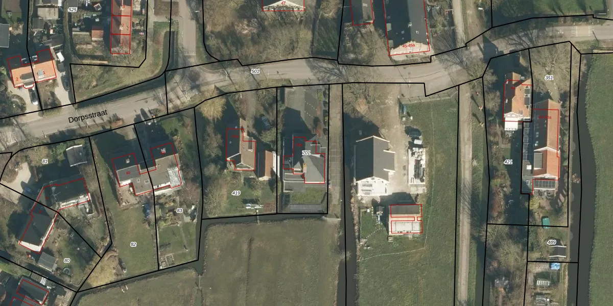 Gebruik de zoekbalk of klik op een perceel om informatie over het perceel te bekijken.