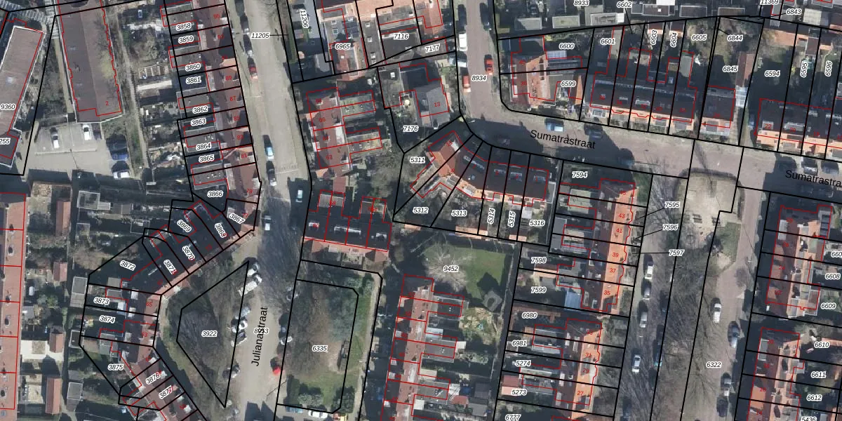 Gebruik de zoekbalk of klik op een perceel om informatie over het perceel te bekijken.