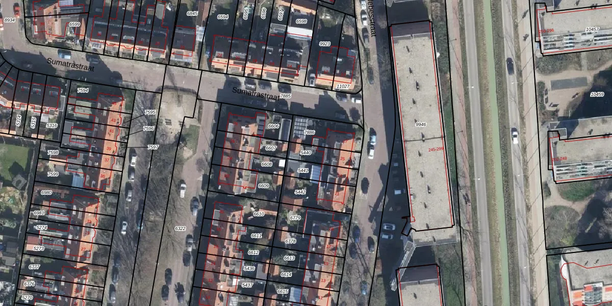 Gebruik de zoekbalk of klik op een perceel om informatie over het perceel te bekijken.