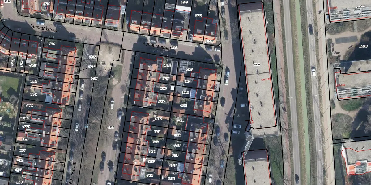 Gebruik de zoekbalk of klik op een perceel om informatie over het perceel te bekijken.