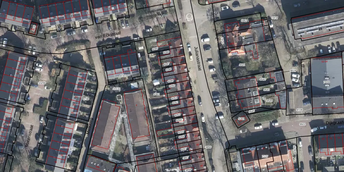 Gebruik de zoekbalk of klik op een perceel om informatie over het perceel te bekijken.