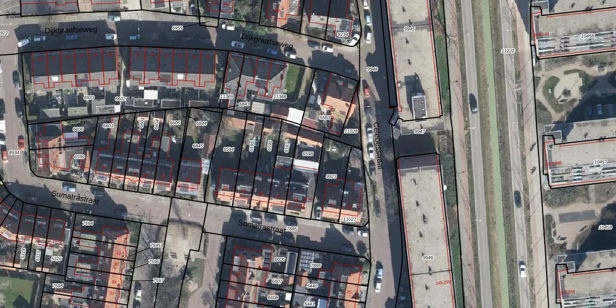 Gebruik de zoekbalk of klik op een perceel om informatie over het perceel te bekijken.