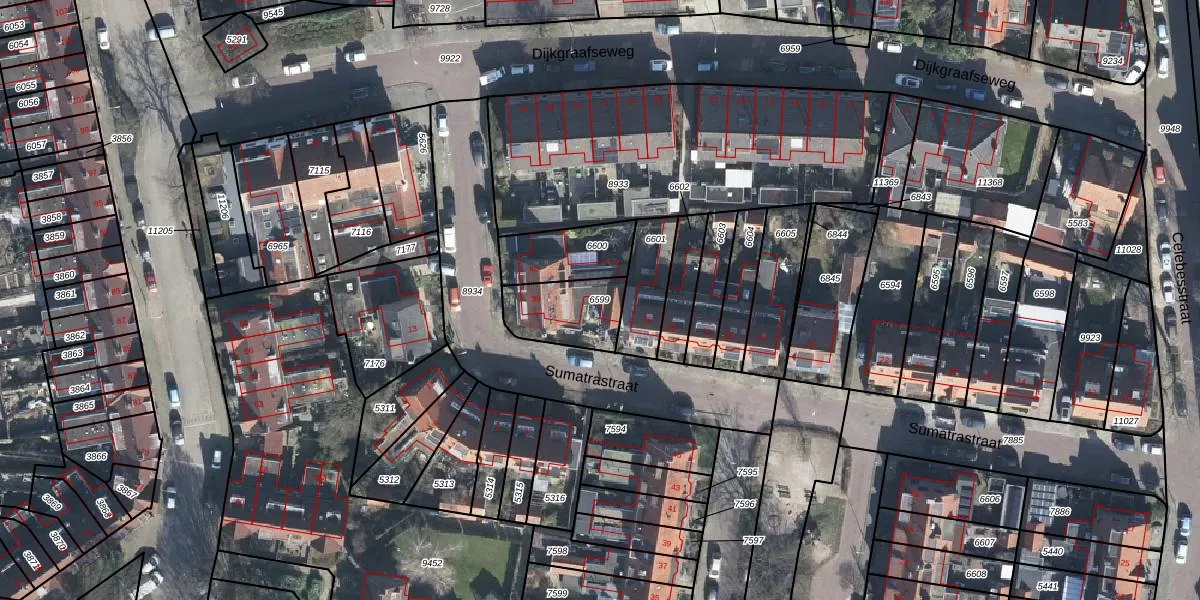Gebruik de zoekbalk of klik op een perceel om informatie over het perceel te bekijken.